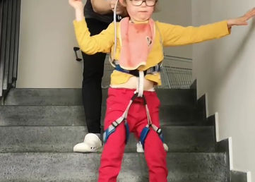 Mathilde a fait en septembre 2023 sa 5eme thérapie. Grâce à ses thérapies Mathilde a acquis la marche, elle a aussi acquis l’équilibre, un meilleur tonus du dos, à monter et descendre les escaliers, à marcher dehors, à marcher malgré les obstacles en regardant ses pieds, à se pencher et se redresser pour ramasser des objets au sol...